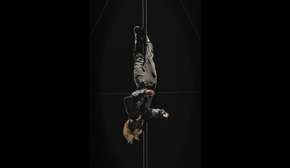 Sobre l'escena hi trobareu l'artista de circ Silvia Capell i el percusionista Bernat Torras.