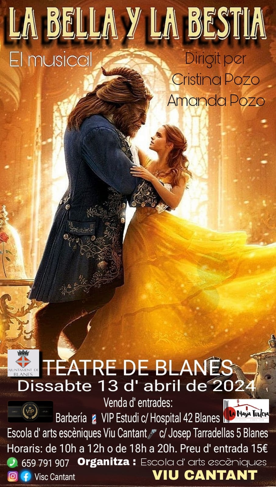 Espectacle Musical per a tota la familia en el que mitjançant el cant, la dansa i el teatre s’explica la famosa història d’amor entre la Bella i la Bestia. Amb un elenc de gairebé 30 artistes que us faràn gaudir de moments màgics.