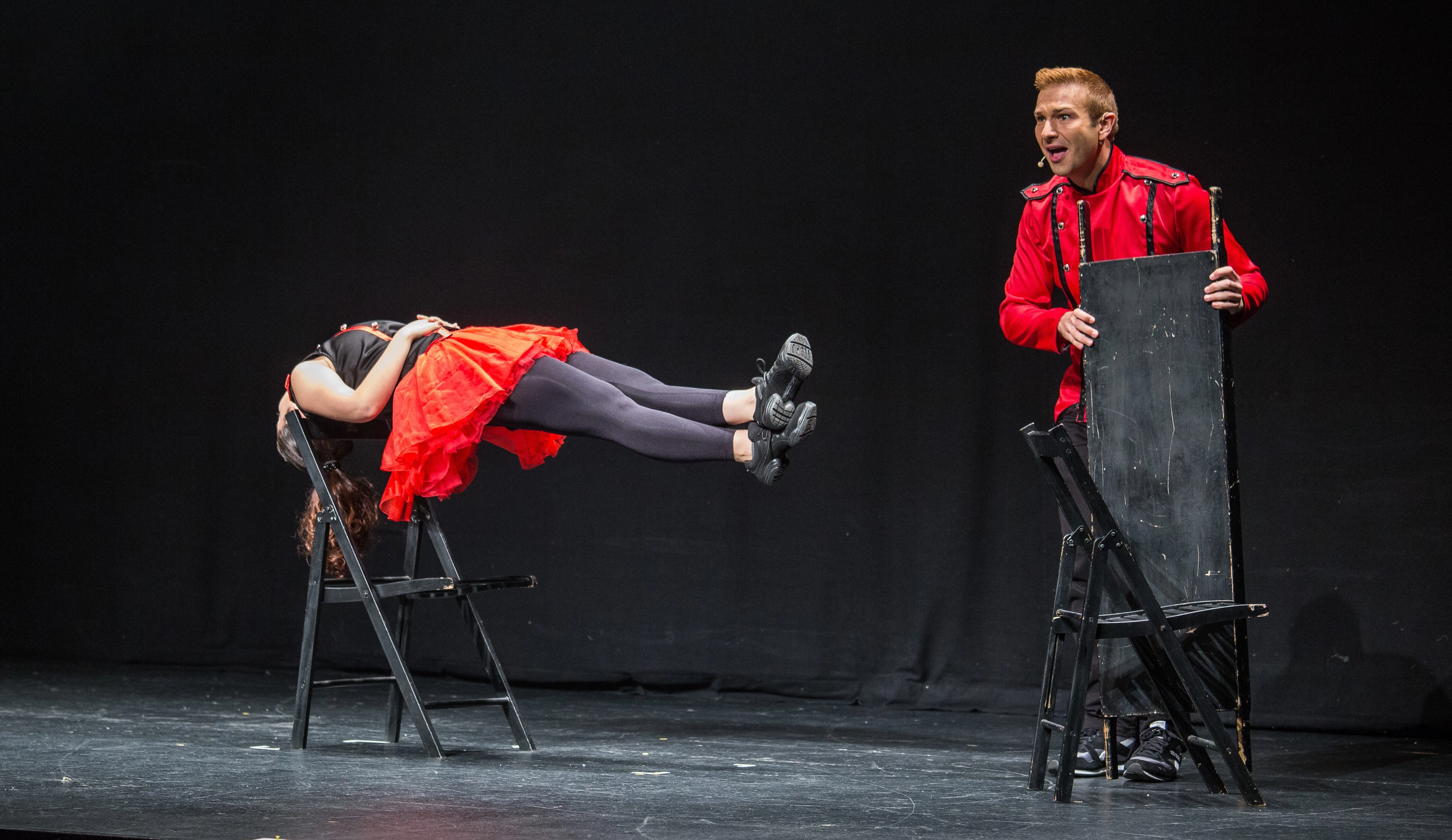 El Mag Stigman, il·lusionista acompanyat a l’escenari per la seva ajudant, presenta un espectacle visual, entretingut, ple d’efectes màgics.